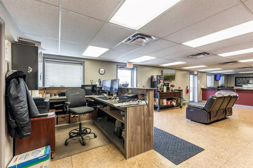 4,800 square foot building for lease, located in Brier Park Industrial area of Medicine Hat. The building features a 1,200 square foot front office space, with two washrooms, one private office, and large reception area. The 3,600 square foot shop space has an additional 1,200 square foot mezzanine that could be used as storage or additional office space. The mezzanine includes a washroom with a walk in shower. The shop area has two automated 14' x 14' overhead doors, three hoists, built-in airlines for air compressor, built-in pressure washer, radiant heat, make up air unit, exhaust, floor drain and LED lighting. Electrical panel is 225 AMP 240 Volt. The front paved parking lot offers 19 designated stalls for customer use, with additional fenced areas on both sides of building for extra storage, including a shed. Asking $12.00NNN, plus estimated occupancy costs of $3.00/sqft and seperately metered utilities plus GST. This property is also available for sale at $849,900, see MLS A2300101.