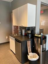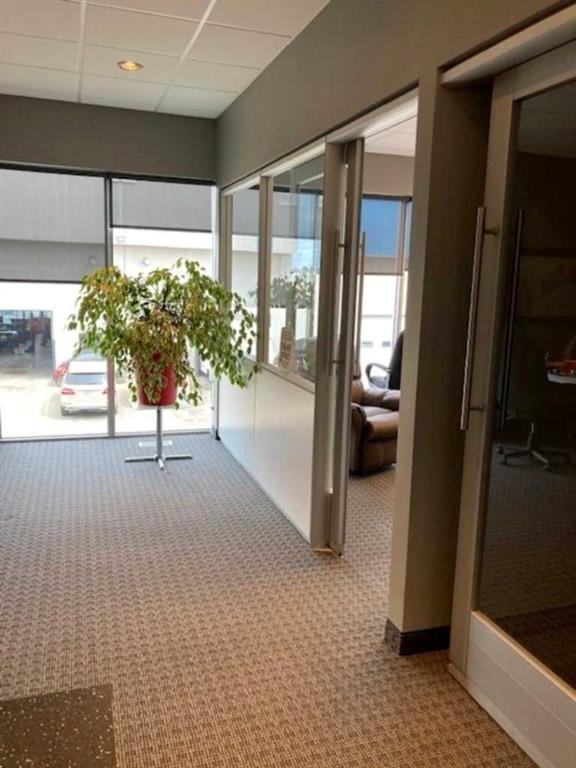 above average modern finishing including stone feature walls, glass sliding doors for offices, DIRT glass/panel wall system for offices, modern custom blinds for all windows, custom wet coffee bar on each floor, upgraded sound protection between floors and offices, each floor has independent heat/AC control, generous office sizes, high speed internet available, custom storage in shop area, floor drain in shop, shop water tap, 10' wide by 8' high OHD to shop with electric opener, 4 extra paid parking stalls adjoining (total of 7)