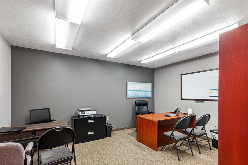 Office Condo Bay with great exposure. Features two floors of premium office space with a small rear shop. Main floor office area is 1380 sqft with reception, 5 offices, two bathrooms, small kitchen and storage room. Front vestibule allows separate access upstairs to 1495 sqft of 4 offices, a large bright board room and bathroom. Also, there is a 690 sqft shop area in the rear with an over head door and small mezzanine. Currently there are tenants in two offices upstairs that have access to the board room for $775 per month gross each with two more vacant ones that could be rented, and the back shop area is rented for $1300 gross per month. All 3 current tenants would like to stay if possible. This is a great opportunity to run your office out of the main floor and have your mortgage mostly covered by the other tenants in the building and also allow you the flexibility to grow in the future. The main floor office space would be available upon possession. Building offers flexible options for keeping as an income property, partial income and owner use, or complete owner occupation. Lots of possibilities.