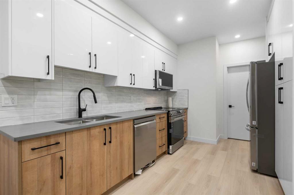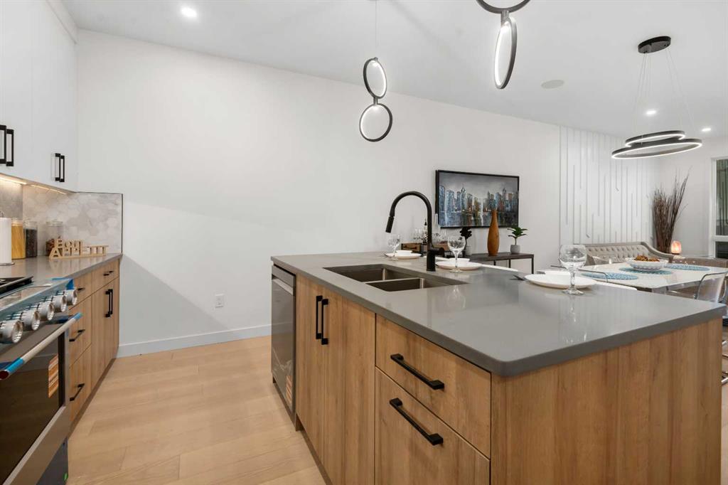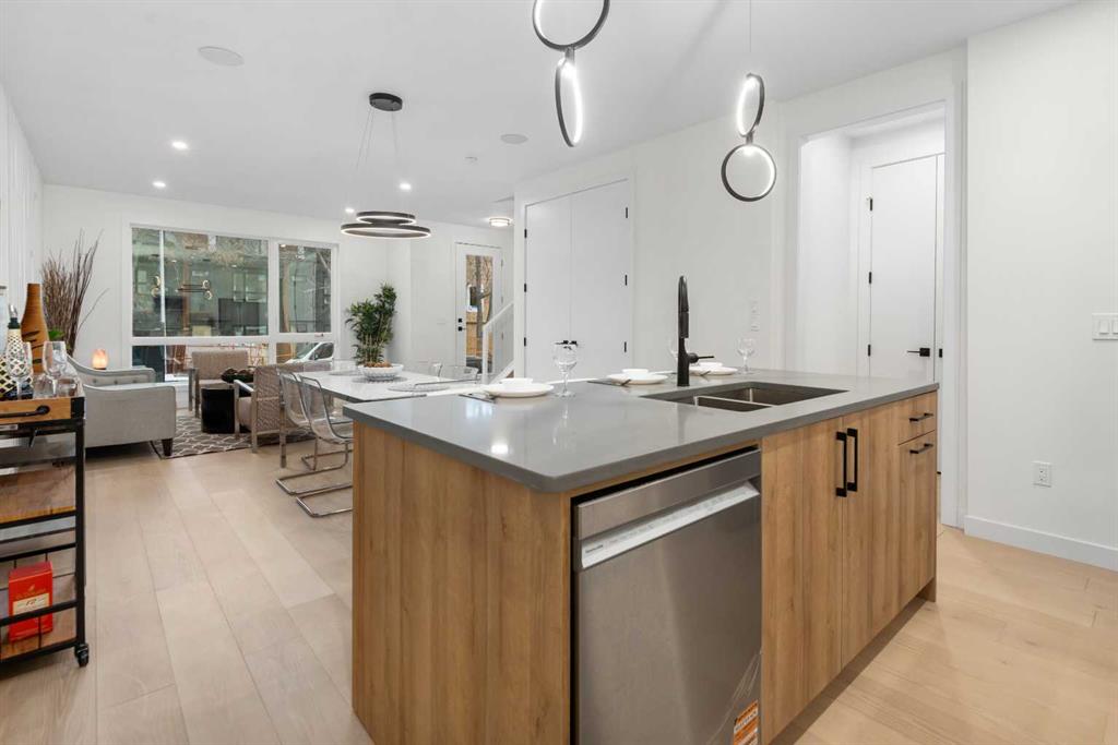 An excellent opportunity to expand your investment portfolio in the heart of Marda Loop. This BRAND NEW 8 unit complex is complete and ready for immediate possession. Situated on a large 50x125 ft. lot, on a tree lined street, just steps from river park and the heart of marda loop. Easy transit access to MRU and downtown. The upper 3 storey units offer over 1800 sqare feet on three levels, above grade and an addtional 575 square feet basement suites with separate entrances (Units can be connected to basement directly if desired) High quality modern finishes throuhout this spacious townhouse. Hardwood, quarts, stainless steel appliances, ceramic tiles. Each upper unit features three bedrooms and 3 and a half baths. An excellent main level with living, dining and large kitchen with Island. The second floor boats two large bedrooms both with large closets and ensuites. The top third floor showcases an amazing Primary suite complete with a huge walk in closet, large ensuite with walk in 2 person shower. Dual sinks, and a full east facing private balcony. The basement suites boast high ceilings, full moden kitchens, ensuite laundry and separate spacious bedrooms with large closets. Single detached garages for all units. (4) This build can be eligible for CMHC MLI Select financing. Rental rates in the area have remained stable with low pre dominant vacancy. Possible gross monthly income of $15k-$17k Furnished units can attain more and can be included in the purchase price as required. Full appliance packages for all 8 units included, and all units a separately metered. A great opportunity in a thriving community.