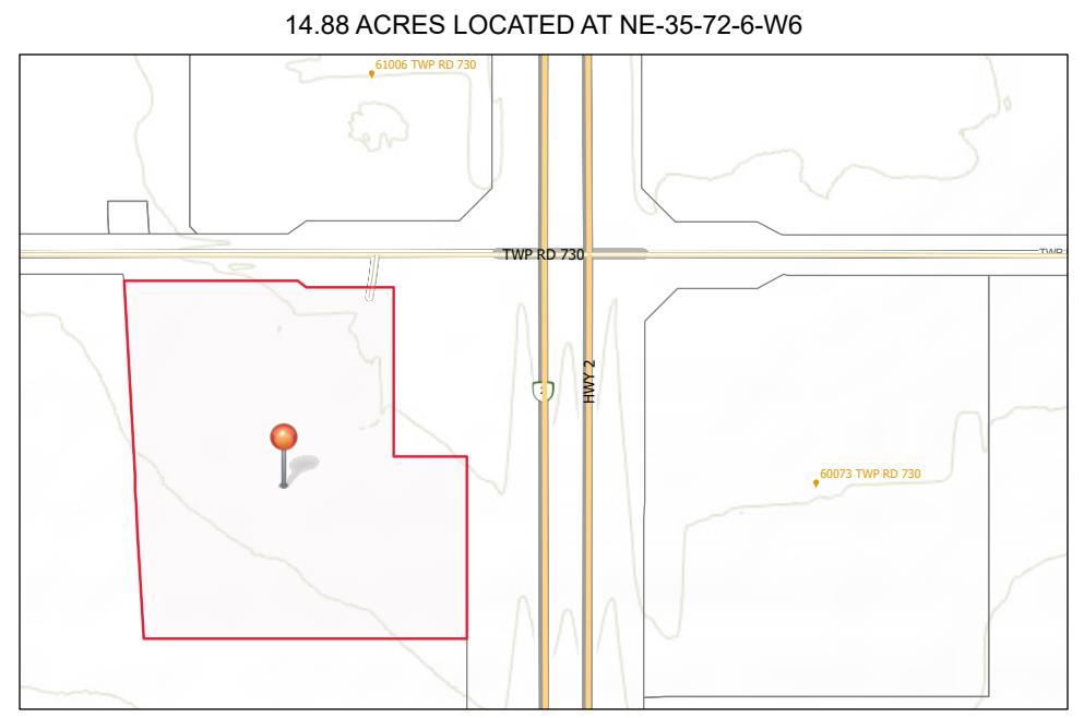 14.88 acres of RM2-zoned commercial land with prime Highway 2 frontage, offering exceptional exposure and accessibility. This elevated site on Mercer Hill provides some of the best panoramic views in the Peace Country, along with outstanding visibility for your business. Conveniently located just 5km north of Grande Prairie, with easy access to both Highway 43 and Highway 2, the property is well-positioned for a variety of rural medium industrial. Minimal gravel road travel, with only 220 meters from Highway 2 to the property entrance. An added benefit is $15,000 in annual oil revenue, which this contract is fully transferable to the new owner. Opportunity awaits—secure this highly visible commercial site and build your future business today. Contact your Commercial Realtor® today! Note: Property taxes are subject to change since the levy is a specific grandfathered farmland usage rate.