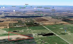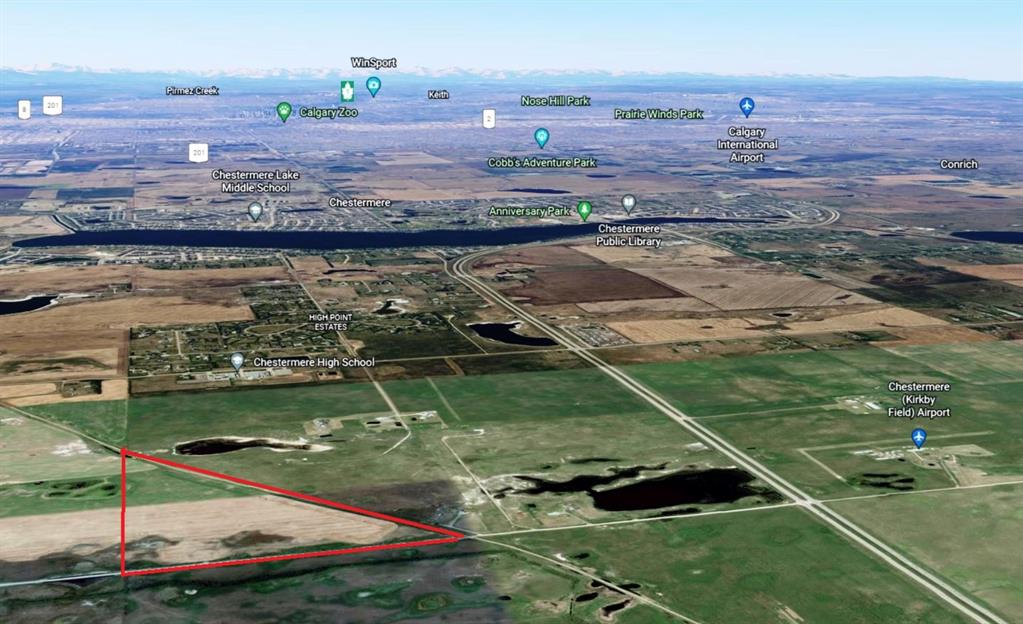 Exceptional PROPERTY FOR FUTURE DEVELOPMENT (subject to approvals) and with a view of the mountains. There is IDEAL ACCESS to this property, being 1 kilometer south of the TransCanada Highway, 2km from Chestermere Airport, and adjacent to a CN railway line. To the west 1 kilometer is Chestermere High School, the City of Chestermere is 3km, and Calgary is 11 km away. UTILITIES ARE CLOSE by as well. This slow-rolling land is cleared and being farmed. There are current and past development plans for the properties to the north and south. The Dehavilland Field airport property is just 11km east.