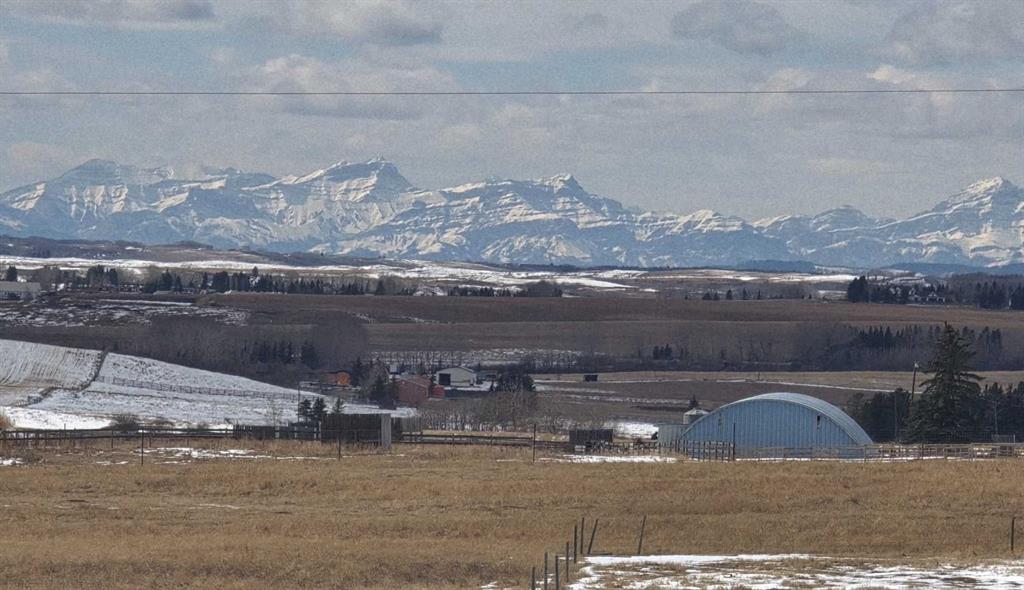 50 Acres with Panoramic Mountain Views at Symons Valley and Big Springs Road Intersection. First time offered!! 50 acre opportunity property located at intersection of Symons Valley Road and HWY 567 (Big Hill Springs Road), straight west of Airdrie. Unbeatable mountain views, slightly rolling terrain, and convenience of paved road to the driveway. 1040 sq.ft. , 2 bedroom, 2 bathroom, fully serviced Modular home on site (could be sold and moved, with new home built to replace it). 105' x 35' 3-section shop plus another 23' x 38' storage building. Fenced and cross-fenced.. Approximately 15 minutes to Airdrie, 10 minutes to North Calgary, and 25 minutes to Calgary International Airport. Site is zoned A-SML,, but location would suggest future property development opportunities, with existing road easement to Symons Valley Road. Approximately 4-acre lease generates $4,500/year revenue for the property. Planted grazing lands are organic, with no applied chemicals for past 20 years. Multiple walk-out building sites with unrestricted mountain views Available with short notice!
