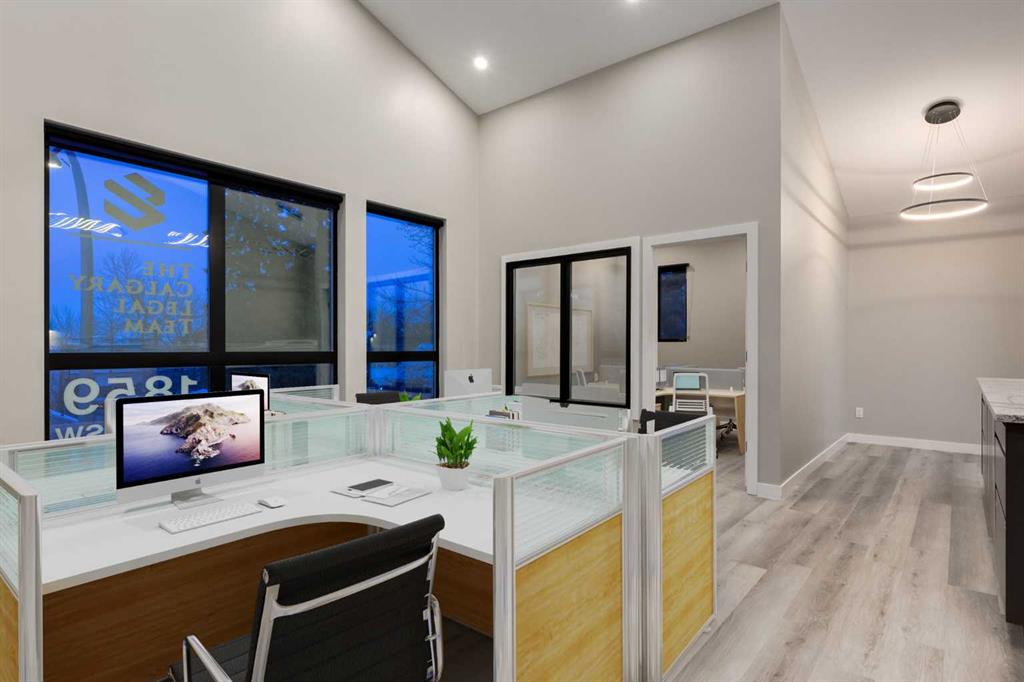 SPECTACULAR INNER-CITY MIXED-USE COMMERCIAL OPPORTUNITY ON ICONIC 17TH AVENUE SW! Located in the highly sought-after community of Bankview, this MODERN 2-STOREY CORNER UNIT w/BASEMENT offers 1,713 SQ. FT. OF DEVELOPED SPACE designed for MAXIMUM VISIBILITY, FUNCTIONALITY + PROFESSIONAL PRESENCE. Featuring 3 PRIVATE OFFICES, 2 BULLPEN WORKSPACES, 3 TWO-PIECE BATHS, A CONTEMPORARY KITCHENETTE + A PRIVATE PARKING STALL, the layout provides exceptional flexibility for a wide range of business uses. A bright, welcoming foyer finished w/LUXURY VINYL PLANK FLOORING, NEUTRAL PAINT + MODERN LIGHTING sets the tone, while built-in cabinetry enhances organization + efficiency. The first private office sits immediately to your left - ideal for a RECEPTION OR EXECUTIVE OFFICE - while the spacious bullpen further down the hall accommodates multiple desks and is complemented by a full wall of sleek cabinetry. The adaptable design allows the front office to function as a RECEPTION WITH WAITING AREA, or the rear bullpen to serve as a DEDICATED CLIENT LOUNGE, complete w/an accessible two-piece bathroom for clients + staff. Upstairs, SOARING VAULTED CEILINGS & FLOOR-TO-CEILING WINDOWS W/NORTH & EAST VIEWS flood the space w/natural light, enhanced by large roll-down blinds for privacy + light control. The upper level features a second expansive bullpen suitable for multiple workstations, a BOARDROOM CONFIGURATION OR COLLABORATIVE OPEN WORKSPACE — ideal for creative studios, professional services, or corporate office use — along with a 2nd private office + additional two-piece bath. The fully developed basement continues the modern aesthetic w/LARGE WINDOWS + A STYLISH KITCHENETTE COMPLETE W/ FULL FRIDGE, MICROWAVE + DISHWASHER, plus a 3rd private office w/ access to the utility room. Added highlights include CENTRAL A/C, UPGRADED FIRE SAFETY FEATURES + REAR/SIDE ACCESS FOR STAFF OR DELIVERIES. Perfect for LAW FIRMS, ACCOUNTING OFFICES, AGENCIES, or CREATIVE STUDIOS, this MIXED-USE space adapts effortlessly to professional + client-focused businesses. Boutique retail, WELLNESS STUDIOS, SALONS, + SPECIALTY SHOWROOMS also thrive here, taking full advantage of 17th Avenue SW’s HIGH VISIBILITY + foot traffic. Located in one of Calgary’s most dynamic commercial corridors, the property offers IMMEDIATE ACCESS to shops, restaurants, transit, and major routes. With the seller OPEN TO LEASING, this RARE OPPORTUNITY provides FLEXIBILITY in a premier urban setting. A RARE BLEND OF LOCATION, VISIBILITY & MODERN DESIGN — LET YOUR BUSINESS THRIVE WHERE CALGARY COMES ALIVE.