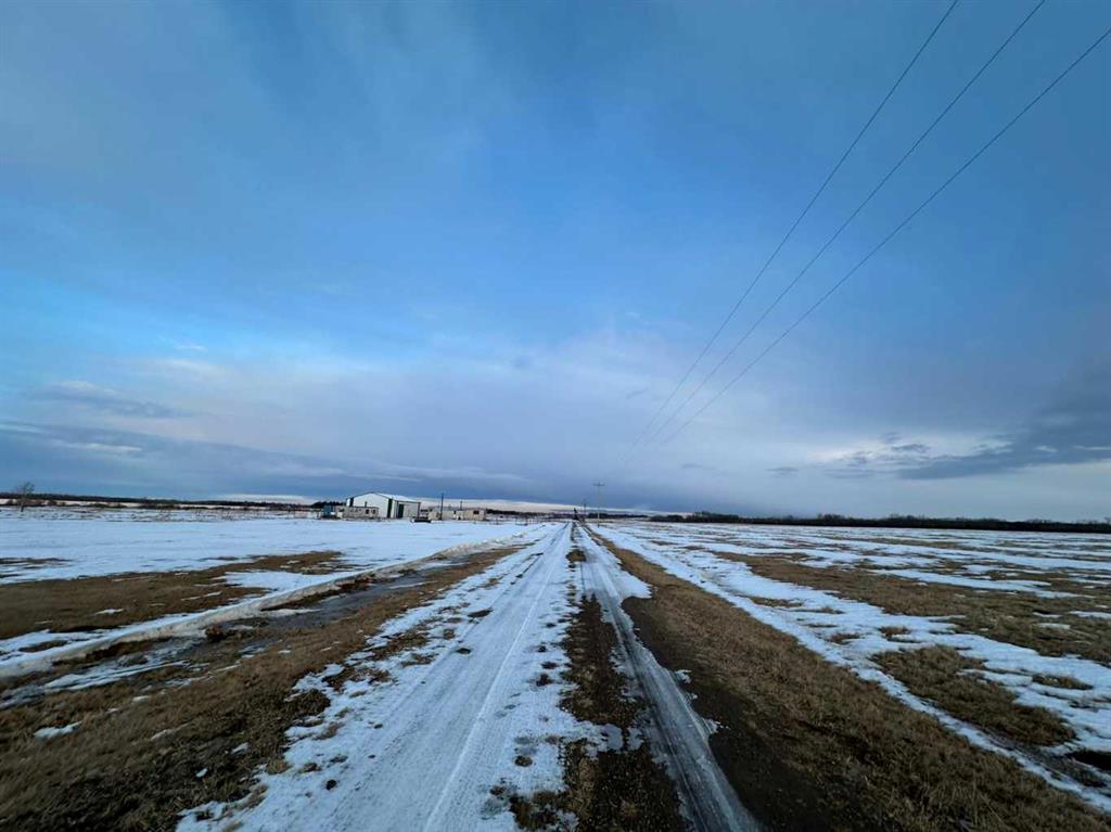 Located along Highway 11 with excellent visibility, this 154-acre mixed farming property offers significant future commercial development potential. The land features a combination of open fields and mature trees, along with a single-wide mobile home and an additional serviced site. A large, newer metal shop is also on the property, divided into two sections: the east side measures 24x40 with a 14 ft high by 19.6 ft wide overhead door, while the west side is 36x40 with a 12 ft high by 11.6 ft wide door. The shop includes cement floors, 220 power, and a 2-piece bathroom. This property also generates solid annual income with \$7,000 from oil revenue, \$5000 from a land lease, and \$2000 from a gas lease. A rare opportunity in a prime location with strong investment potential.
