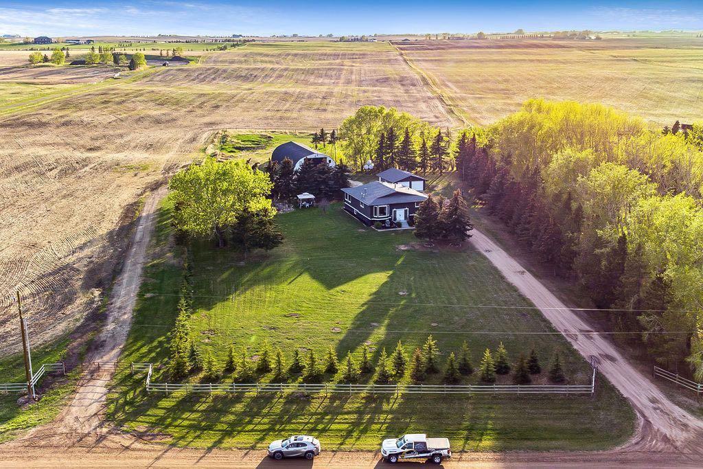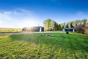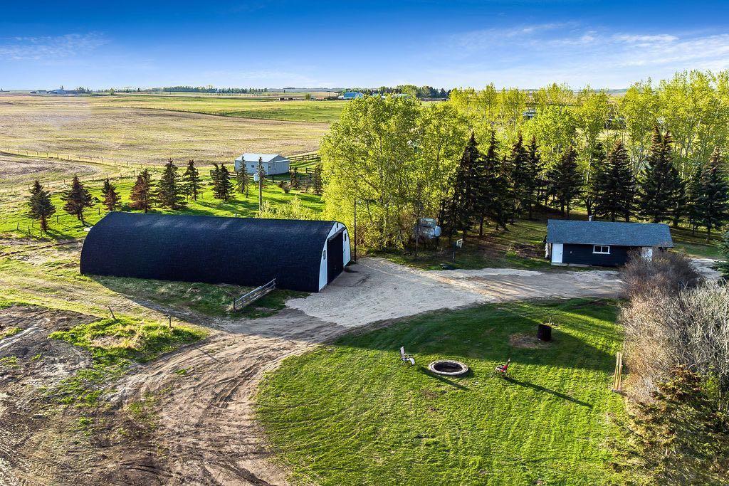 Live, work, and play on this 40 Acre parcel just minutes from Airdrie and Calgary. This beautiful property is zoned Agricultural providing endless opportunities for a home-based-business set up. Two tree-lined driveways into the property for direct access to the house/garage or the shop (Quonset). The exterior has been updated with new siding and the shingles were replaced approximately 5 years ago. A gated cul-de-sac gravel driveway leads you to the home with ample parking for the family with multiple vehicles or RV. The yard space around the home is well groomed with mature trees, planter beds and plenty of room for play or for your very own garden! As you enter the home you're greeted with a BRIGHT SUN ROOM with loads of windows & great outdoor patio space overlooking your private oasis. Fully finished Bi-level with 5 Bedrooms + 3 Bathrooms + Upgrades Galore + FULL ILLEGAL SUITE with private entrance to the basement. A perfect mother-in-law suite (Illegal, subject to approval and permitting by the city/municipality) or mortgage helper with a tenant/longer term guest. The home offers a spacious layout and plenty of room for the growing family. The main floor has 3 bedrooms and 2 full bathrooms. Large open concept kitchen with MASSIVE ISLAND, full set dining area and plenty of cupboard/counter space. Functional and bright living area with gas fireplace and again loads of natural light. A spacious primary bedroom with great views of the mature surroundings. An ultimate entertainment space in the Basement; full kitchen, TV area, flex room which can be used as an office or home gym, 2 more good-sized bedrooms, full bathroom and endless storage. There have been many recent upgrades including new tile and backsplash in the kitchen and bathrooms, granite countertops, huge butcher block island with storage, appliances, new tubs and toilets, all new windows in the lower level, new furnace and more! Beautiful vinyl planks are also new throughout the entire home. Limitless windows allow in plenty of natural light and spectacular views from all directions! The property is fully fenced, offers an outdoor firepit, SPA/HOT TUB with covered roof and multiple outdoor sitting areas. The property also has a 40' X 80' heated Quonset with an office/bathroom and heated floors. A 24’ x 34’ double detached heated garage with a workshop. The property features a new septic system for years of worry-free ownership, also a well offering a good flow rate. This gorgeous turn key farm is waiting for you! Just some of the other great features include: New septic tank, new additional 200-amp pole, 3 x 300-gallon fuel tanks, poured concrete walking paths & more. This is an ABSOLUTE MUST SEE! If you're looking for a property with income earning potential, a place to live and work in an unbeatable location this is the one for you!