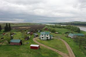 Set beside the quiet hamlet of Brosseau, this exceptional six-title land package totaling 801 acres offers a rare blend of productive agriculture, riverfront scenery, and long-term investment potential along the North Saskatchewan River. Approximately 300 acres are cultivated, generating solid rental income, with the balance in pasture that has been historically used for running cattle. The property is fully fenced and cross-fenced, well suited for mixed farming or livestock operations, and has generated consistent surface revenue of approximately $4,000 annually. One of the property’s standout features is its ~1.75 miles of river frontage, offering breathtaking valley views, privacy, and recreational appeal. The lower bench provides good access points, allowing vehicle access down to the river—ideal for livestock watering, recreation, or future development considerations. A water licence for irrigation is attached to the land, presenting opportunities for irrigation development or expansion, subject to applicable approvals. The land supports abundant wildlife, including white-tailed and mule deer, moose, elk, waterfowl, and upland birds, making it attractive to outdoor enthusiasts. The North Saskatchewan River is well known for walleye, northern pike, goldeye, and sauger, offering excellent fishing and adding further lifestyle and tourism appeal. An older farmstead remains on the property, complete with corrals, barns, workshop, and a large historic homestead heated by coal, with electricity, water well, and septic field already in place—providing a functional base for agricultural use, renovation, or future vision. Conveniently located with good access to nearby highways, the property sits within reasonable distance of Two Hills and St. Paul, offering services, supplies, and community amenities while maintaining the privacy and tranquility of river-valley living. Whether you’re seeking a productive agricultural operation, a strategic land holding, or a property with potential for recreational or tourism-based use, this large, diverse riverfront offering presents a rare opportunity in a highly desirable stretch of the North Saskatchewan River Valley.