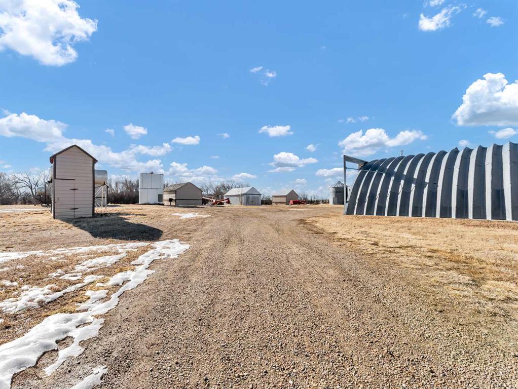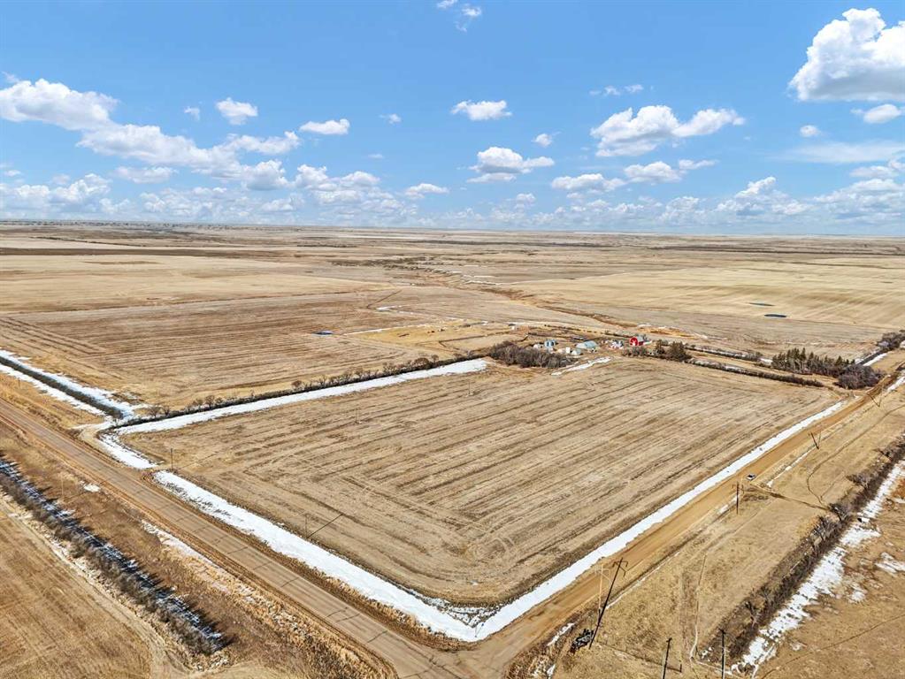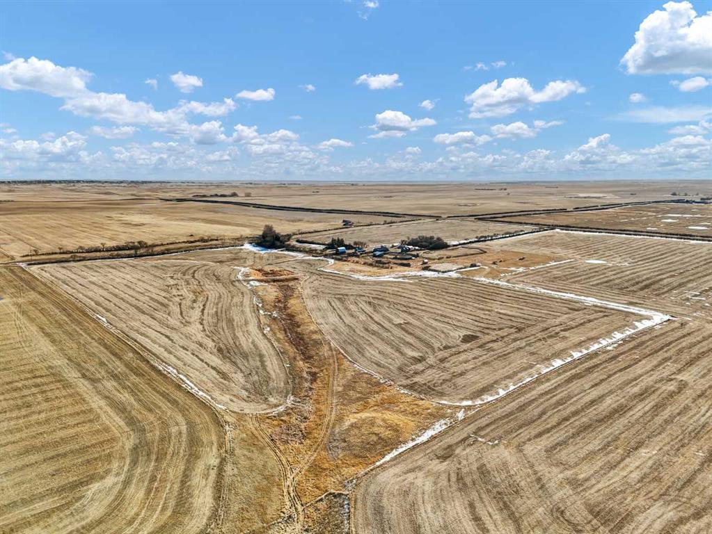 Farming Opportunity! Looking for a place to start ? Or possibly add to an existing operation? This 1/4 section parcel of land consists of 140 acres (+/-) cultivated land plus 20 acres of yard area. The land was last used to grow Peas. The sale includes a 1700 sq ft home ( 5 bedroom 1.5 storey ) with an unfinished basement. There is also a 30' x 32' Detached Garage, a 40' x 62' Quonset with concrete floor, and a 28 x 37 Barn with stalls and a loft for feed storage. There is Power and Gas run to all of the main outbuildings. Water comes from a well on the property with underground lines run to the home and to 3 separate Livestock waterers. There are also multiple grain storage bins , diesel tanks, and good sized set of corrals with shelter. This nicely rounded operation is in good condition and ready to go for the Spring season. Easy access off of the 41 North and directly adjacent to Highway 555.